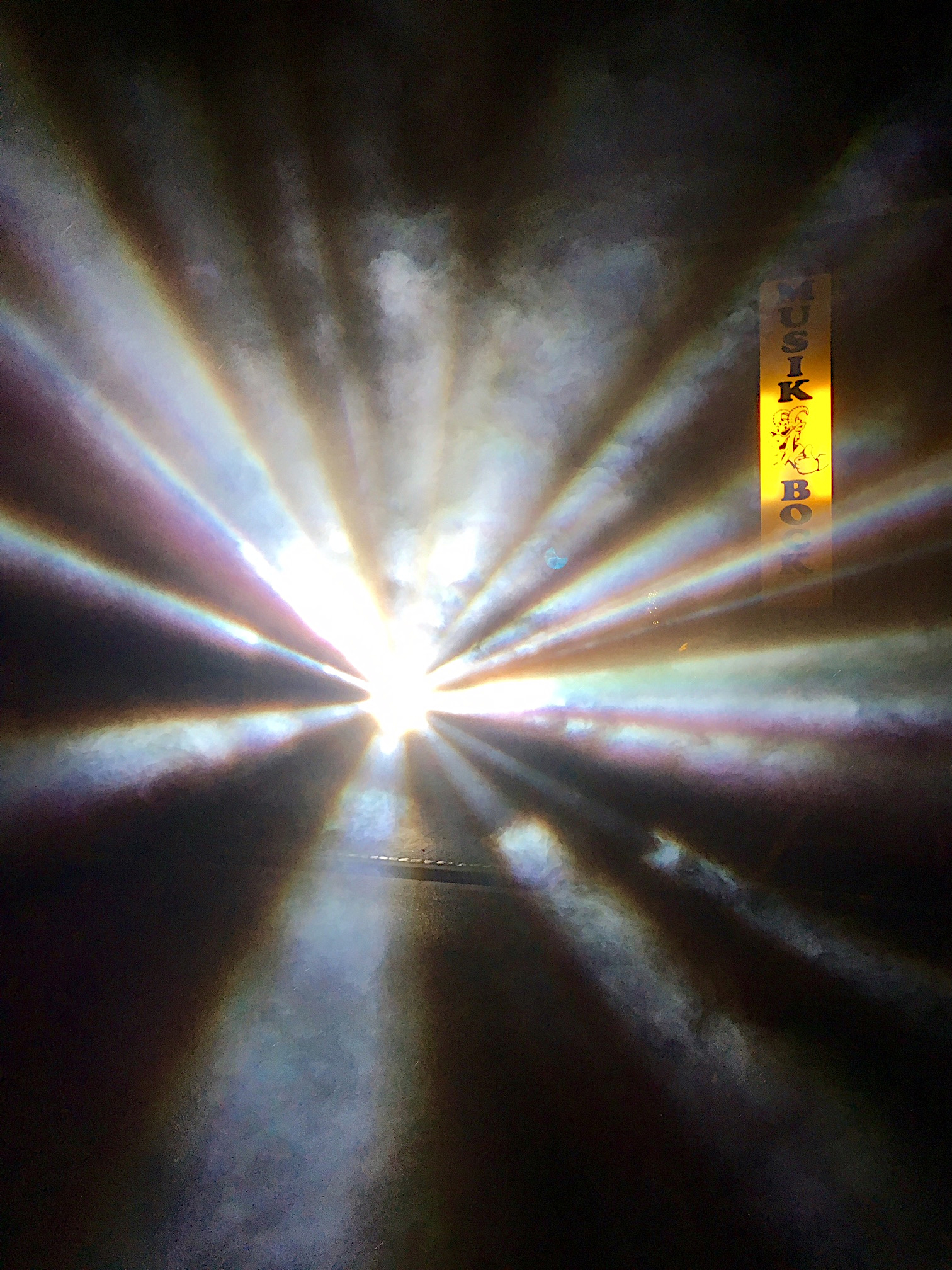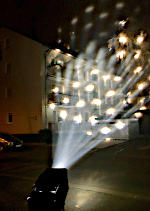 40 Strahlen rotieren kegelförmig in den Himmel,wobei sich das